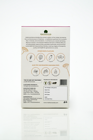 Features: Made with Makhana, Semolina, No Maida, No Sugar, No preservatives, 0% Trans-fat, Rich in plant based protein, fibres, anti-oxidants & micronutrients, 100% machine processed